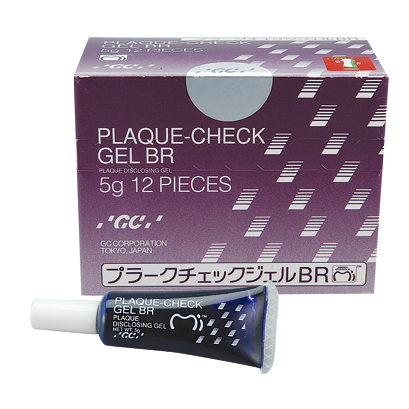 古い歯垢は青紫色、新しい歯垢は赤色に染め出す歯垢染色ジェル。
