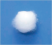 毛羽立ちを抑えた、脱落繊維が少ない綿球。