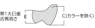 S形態とM形態は、歯冠長、咬合面形態が同一のため、共用することが可能です。基底面形態は維持装置などのスペースを考慮した形状になっており、隣接面にはクラスプとの干渉を最小限に抑えるためのくぼみが付いています。