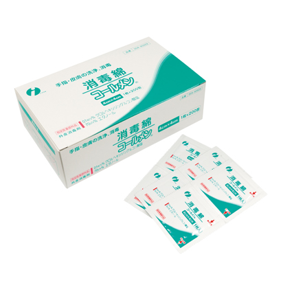 厚みのある脱脂綿を使用した、使い捨てタイプのアルコールカット綿。
