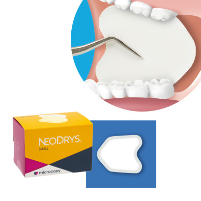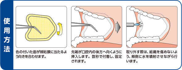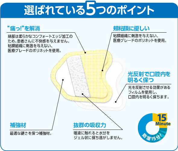 パッドの裏面フィルムが、口腔内を明るく保つ防湿パッド。