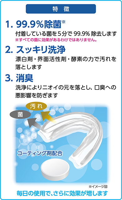 歯ぎしり(ナイトガード)・いびき防止マウスピース専用の洗浄剤。 ニオイの元となる原因菌を99.9%除菌!!