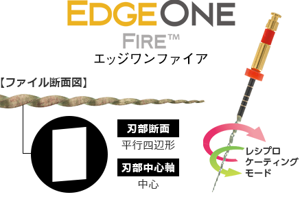 EdgeOne FireTMは、レシプロ対応のエンドモーターで使用されるよう設計された、湾曲根管形成を得意とするレシプロケーティングNi-Tiファイルです。正回転で使用するロータリーファイルと比べるとファイルの構成がシンプルであることが特長で、グライドパス形成後には、プライマリーが第1選択となり、基本的にはその1本で形成を終了することが可能です。