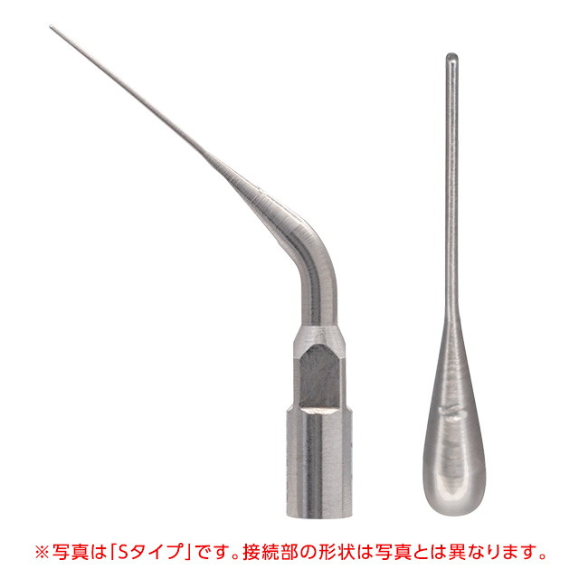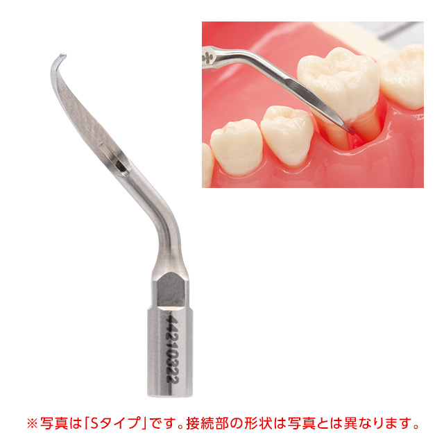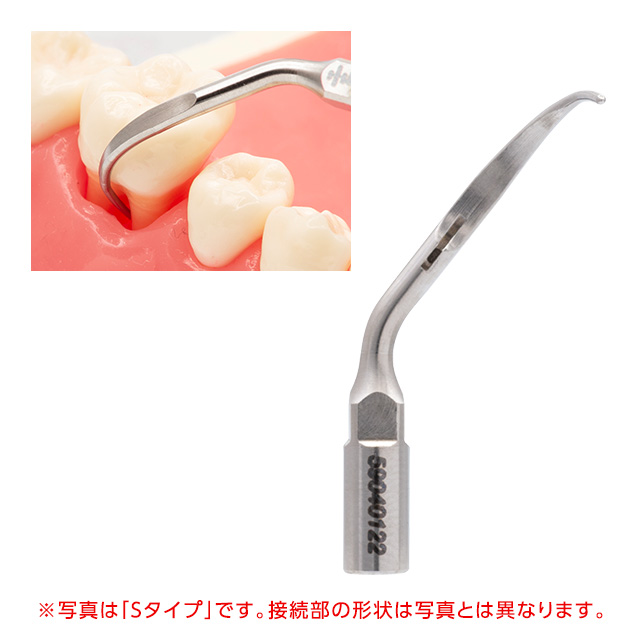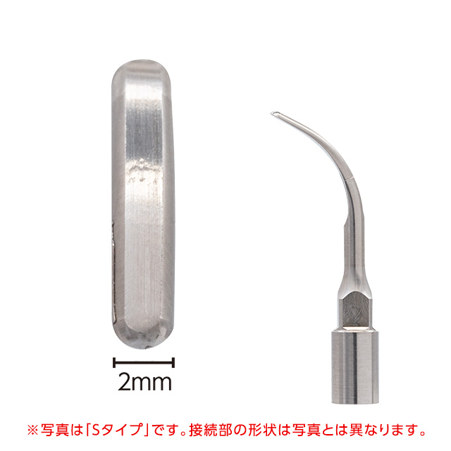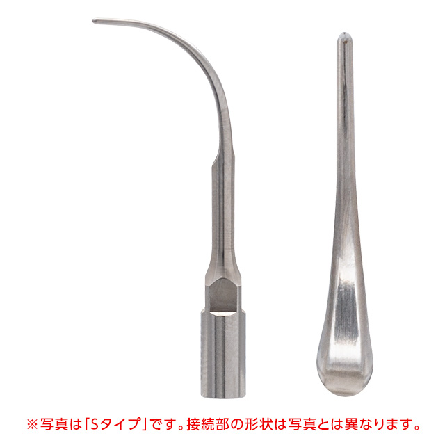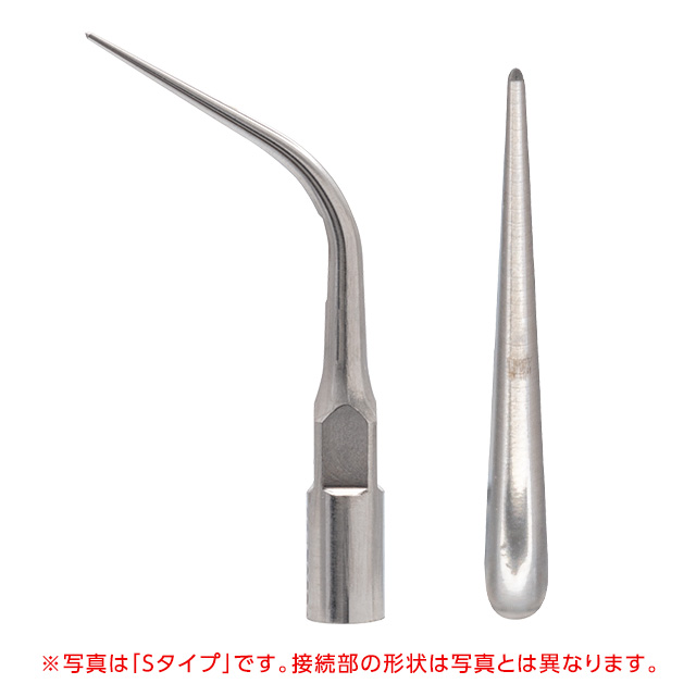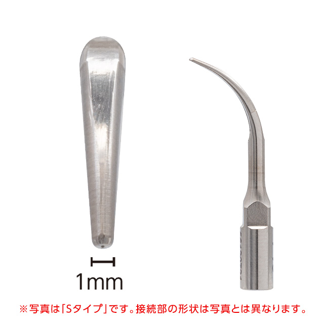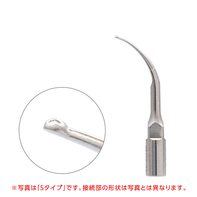先端が丸まっている硬い歯石の除去に適したチップです。歯肉縁上、縁下どちらにも使用できます。