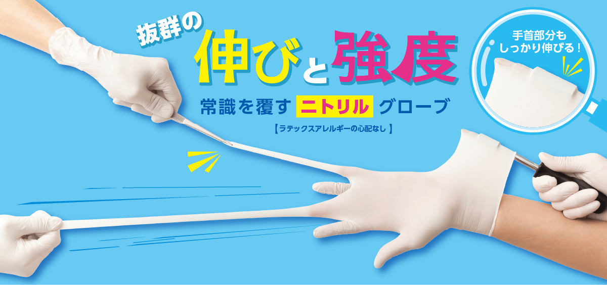 抜群の伸びと強度!常識を覆すニトリルグローブ。