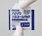 エンボス加工した不織布アルコールパッドを個包装にしています。