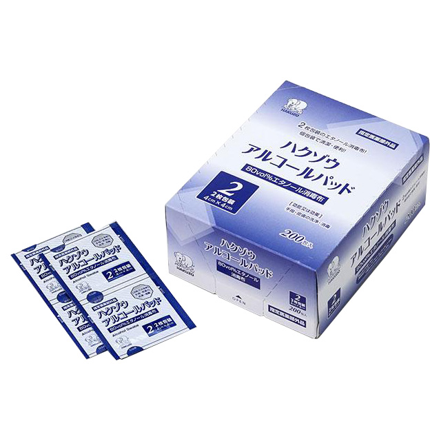 ●商品コード: 4032150●入数: 200包●販売名: ハクゾウアルコールパッド●薬事表示番号: 医療機器承認番号30400DZX01433000