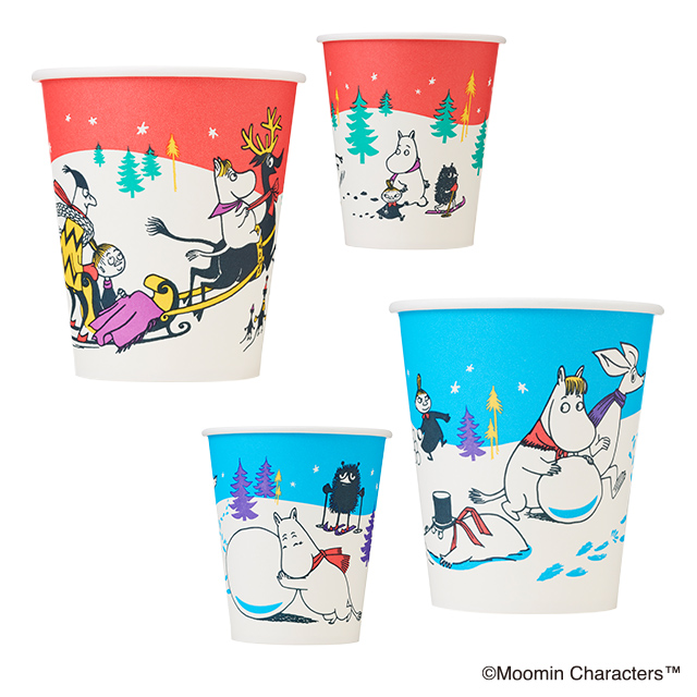 2つのデザインが楽しめる、クリスマスシーズンに向けたムーミンコラボデザインの紙コップ。