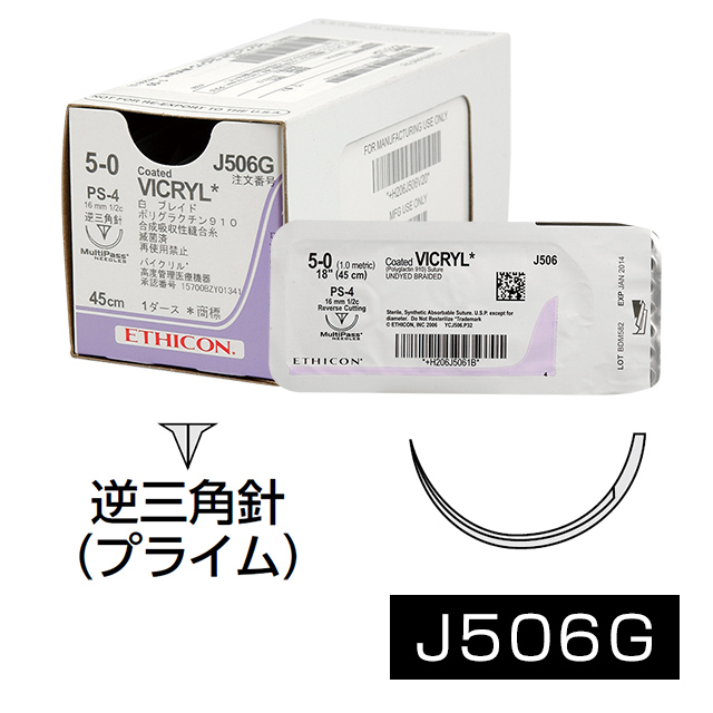 ●商品コード: 3007952●入数: 12本●メーカー型番: J506G●形態番号: PS-4●先端形状: 逆三角針(プライム)●針長: 16mm●湾曲: 強湾1/2●号数: 5-0●糸長: 45cm●材質: ポリグラチン910●糸色: 白●販売名: バイクリル●薬事表示番号: 医療機器承認番号15700BZY01341000
